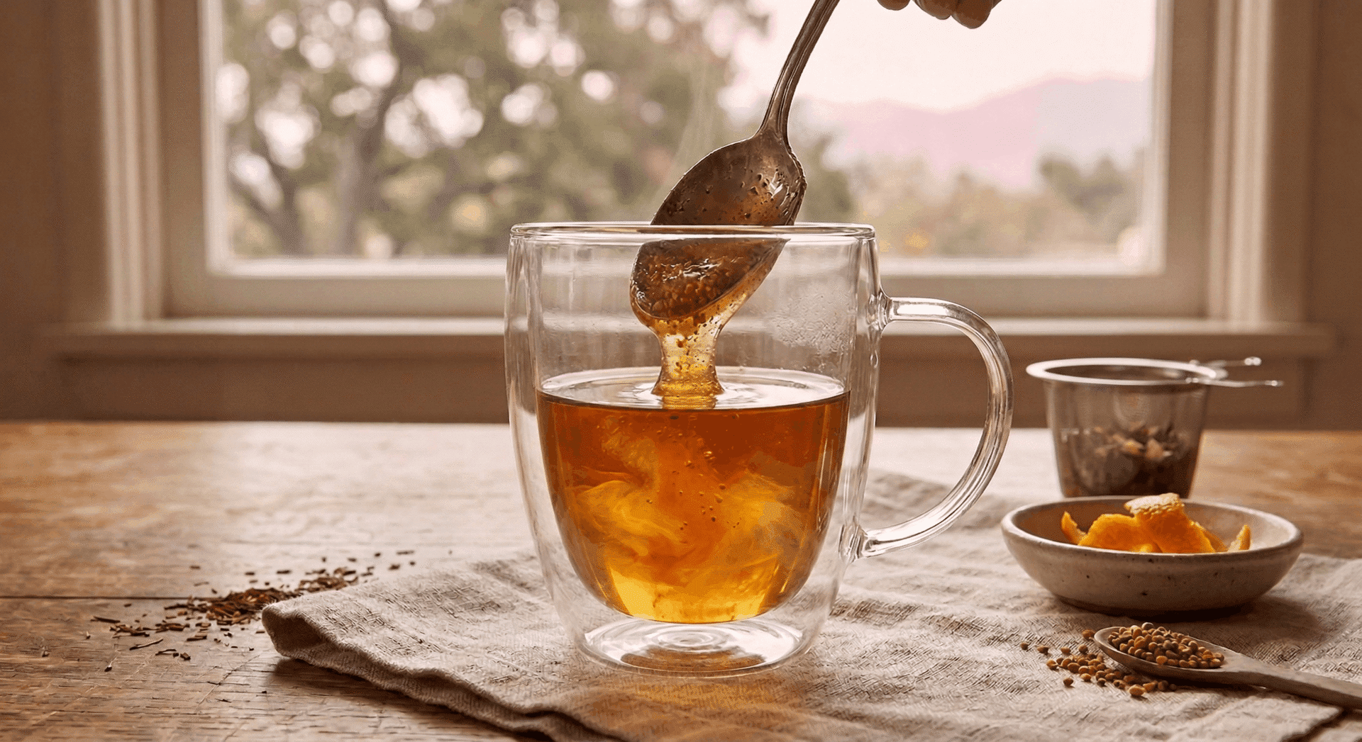 This isn’t just a drink; it’s a sensory journey through an orange orchard. I have specifically paired our Ojai Orange Bliss Tea with Wildflower Honey to create a pollen-rich ritual. It is perfect for those who want to combine eating local honey and allergies relief with a calming beverage.